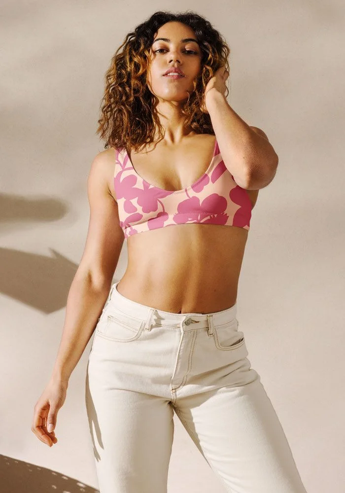 Get ready for those long-awaited beach days with our All-Over Print Recycled Padded Bikini Top. It’s double-layered and has removable padding and a tear-away care label. Print your favorite designs and get this top for yourself, or sell it in your online store. Combine it with our All-Over Print Recycled High-Waisted Bikini Bottom for the ultimate beach set.